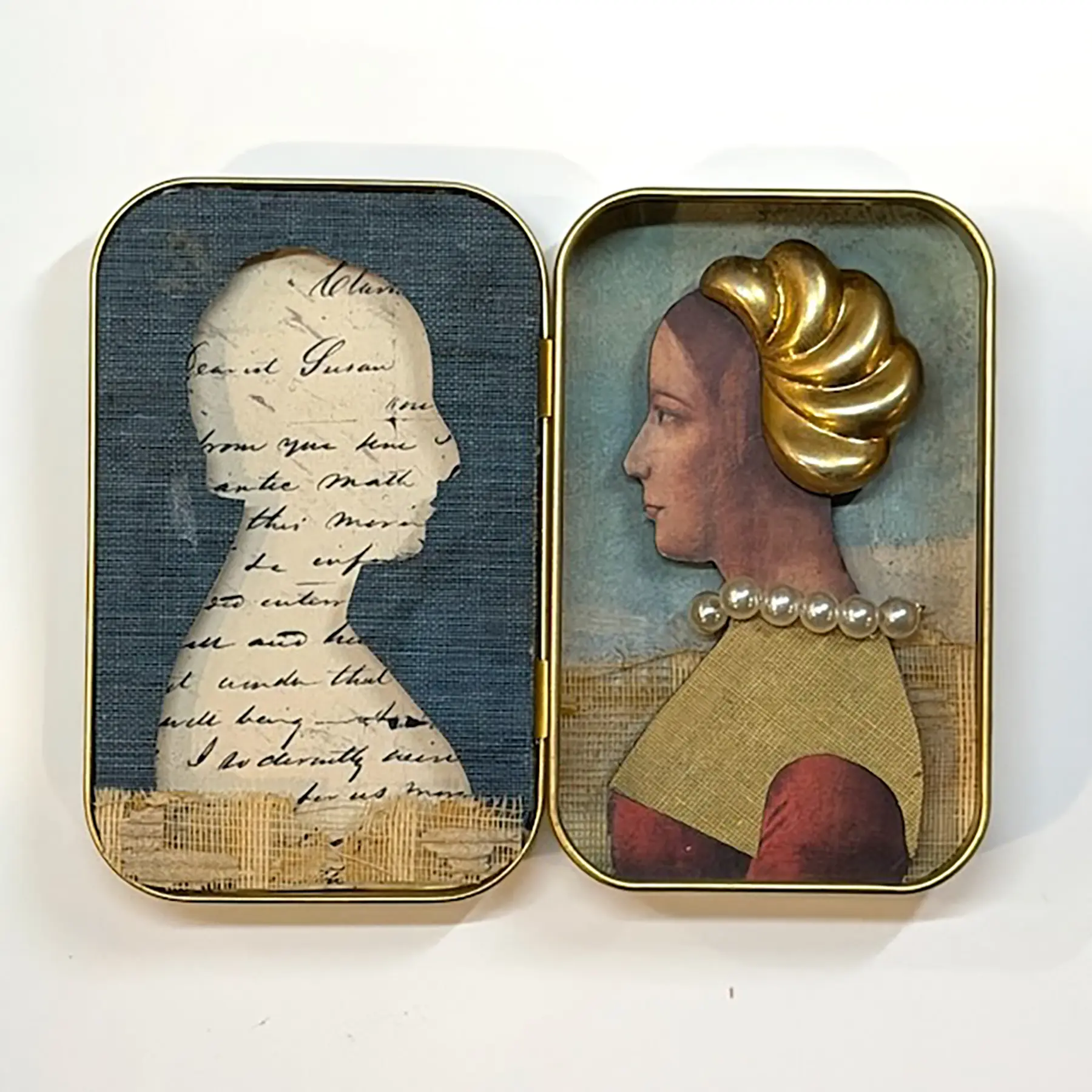 I’m drawn to the odd juxtapositions and quiet tensions that emerge when unrelated pieces come together. Using vintage papers, found textures, hand-printed patterns, and layered imagery, I build compositions that are both intentional and intuitive. Each piece is a mix of curiosity, history, and experimentation—rooted in design, but reaching for something looser and more expressive.